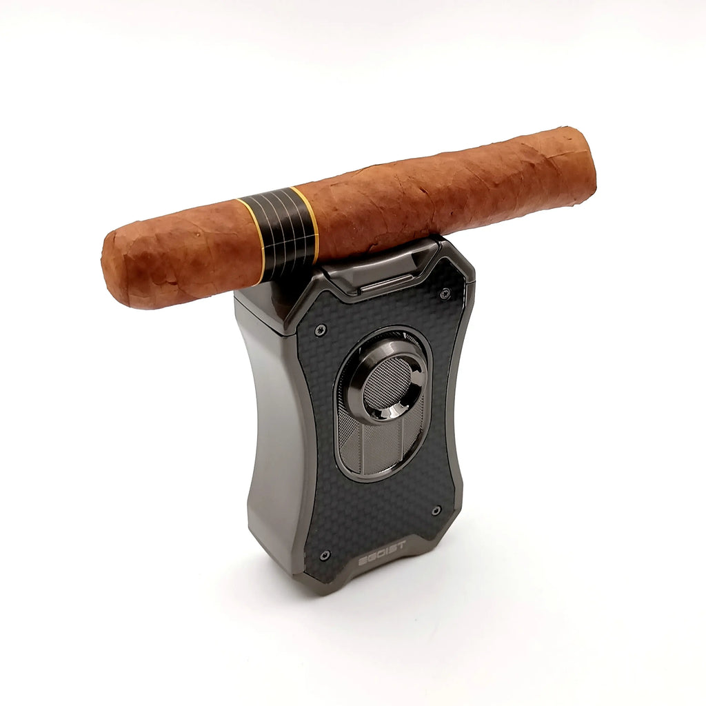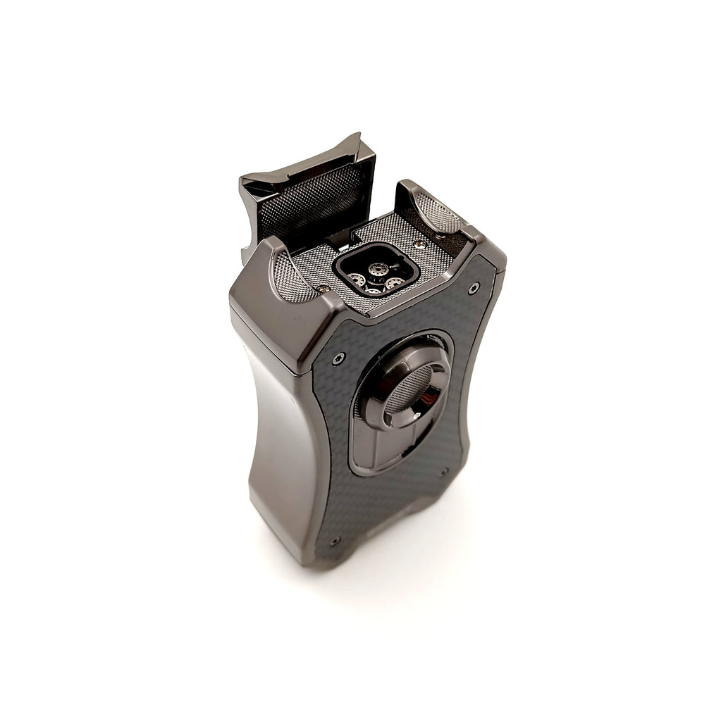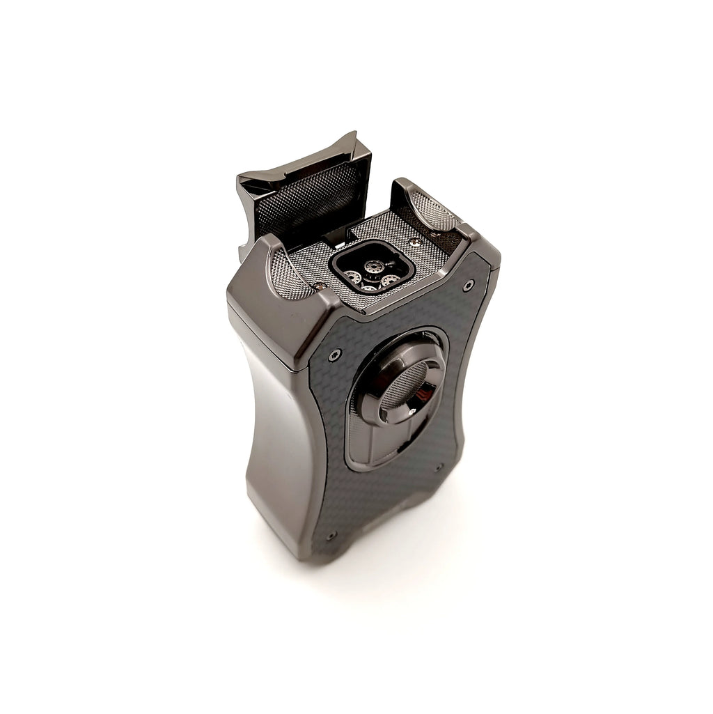 Accendino di dimensioni e peso (280gr) importanti, ottimo per utilizzo da tavolo, con parte superiore sagomata per poggiasigaro.