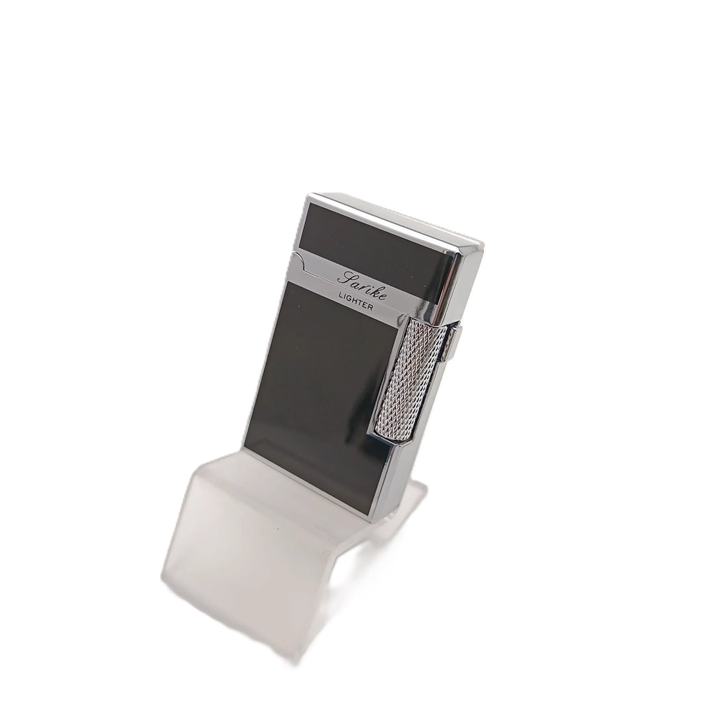 Accendino Jet Flame e fiamma dolce, accensione pietrina, in acciaio e lacca nera.