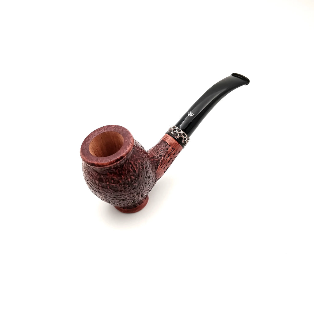SABBIATA, MARRONE, EGG HALF BENT FREE HAND, STAND UP, NO FILTRO, VERA IN ARGENTO LAVORATO, BOCCHINO IN METACRILATO NERO.